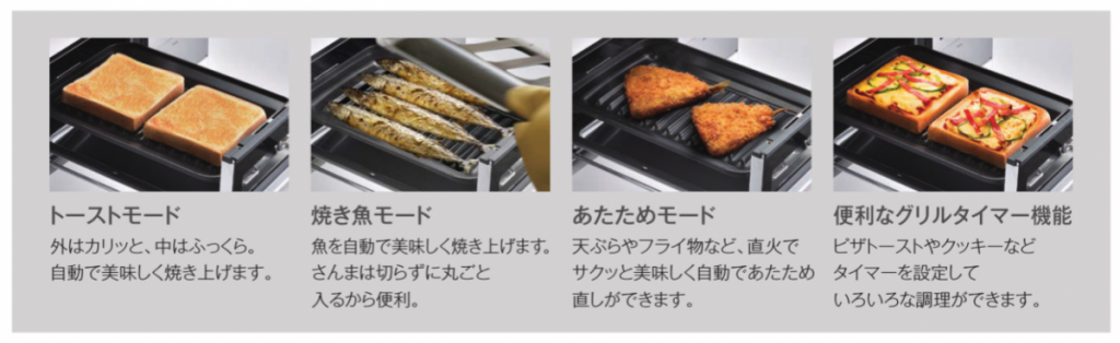魚焼きグリルも、最近主流の水無し両面焼きです!